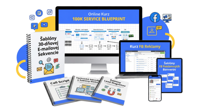 100K Service Blueprint je súbor šablón a návodov, ktoré sú prispôsobené pre podnikateľov, ktorí poskytujú nejaké služby a chcú viac klientov. Dostanete šablóny webstránok, stratégií, reklám, emailov, podkladov, až po kompletné návody, ako získavať klientov cez premyslený funnel a FB/IG reklamu. Všetko to, čo potrebujete na to, aby k vám cez internet systematicky prichádzali správni klienti, ktorí vám budú dôverovať a sami si budú chcieť objednať vaše služby.